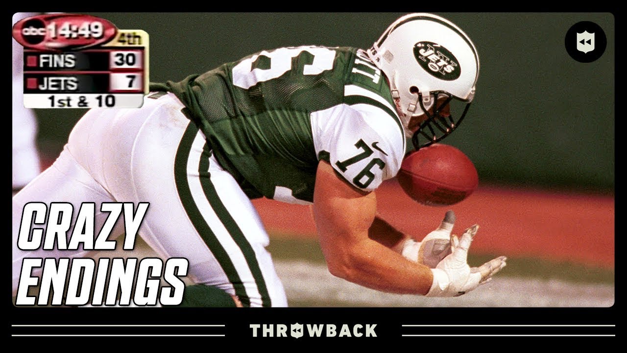 In a Monday Night Football clash of 5-1 teams in the AFC East on October 23, 2000, a Dolphins victory over the Jets at Giants Stadium looked inevitable. Miami led, 20-0, late in the first half, and then 30-7 after three quarters. Frustrated and disappointed Jets fans filed out of the Meadowlands. But suddenly, the Jets’ players sprung up from the dead. A 30-yard touchdown pass from Vinny Testaverde to Laveranues Coles made it 30-13. The Jets scored four minutes later on a 1-yard TD pass by Testaverde, and then four minutes after that on a John Hall field goal to make it 30-23. Less than two minutes later, Testaverde threw a 24-yard TD pass to Wayne Chrebet to tie it at 30. The Dolphins’ defense had collapsed, while the Jets’ defense had forced punt after punt. But just seconds later, Miami’s Jay Fiedler found Leslie Shepherd on a 46-yard pass play to reclaim the lead. Testaverde led the Jets down the field yet again, culminating in a 3-yard TD pass – Testaverde’s fourth in the quarter – to Jumbo Elliott, an eligible tackle. Following an interception, the Jets won it in overtime, 40-37, on a 40-yard Hall field goal. Testaverde finished with 378 yards passing and 5 TDs. Despite all that, the Jets finished 9-7 and missed the playoffs, while the Dolphins won the AFC East with an 11-5 record. ― NFL 100